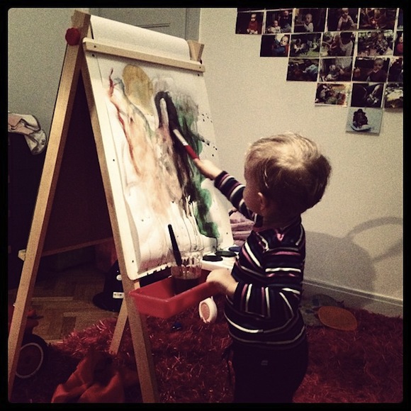 I dag har förmiddagen varit lika solig inne som ute, gnistrande klar med endast en tillstymmelse till moln i samband med intagandet av lunch. Samt den teatrala indignation/förorättelse som vår unge Picasso drabbades av efter att jag skällt på honom när jag upptäckte att han stod och målade med rosa tusch över hela sidostycket på en av de vita bokhyllorna.