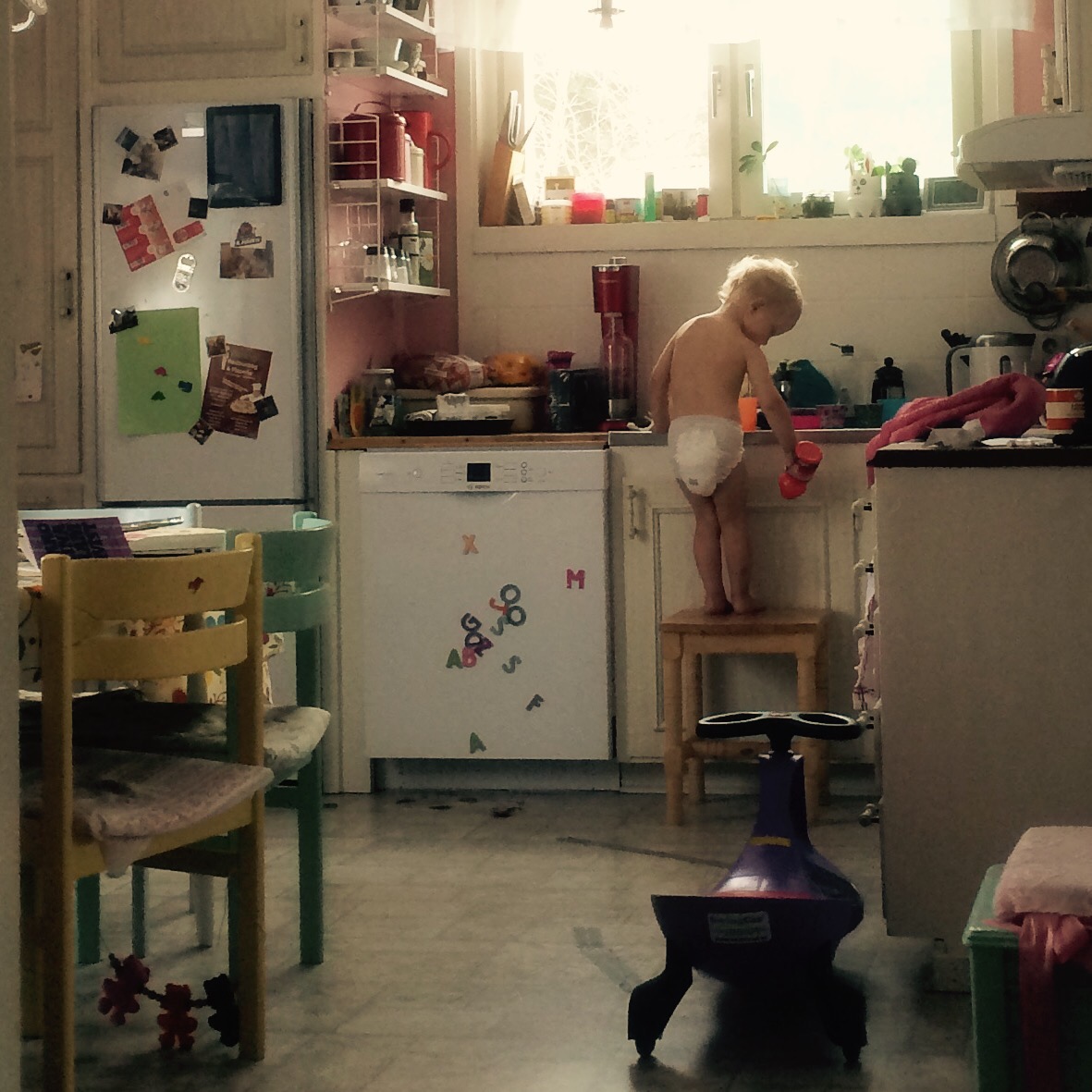 Åter i Stockholm, nu med hela familjen. Vi levde söderklyschaliv efter ankomsten, kastade i princip bara in väskan, bytte blöja och drog till Nytorget, där vi först åt middag på Urban Deli och sedan hängde på lekplatsen tills Ejdas händer hotade förfrysa. Eftersom vi rest 125 mil söderut räknade vi nämligen … ja, kallt med att det skulle vara varmt här och tog alltså varken på barnen vantar eller mössor när vi begav oss ut. Bad parenting.