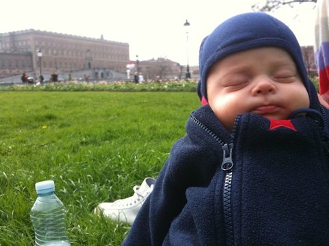 Det slog mig just att vi har slagit oss ner precis på platsen i Kungsträdgården där den dynamiska duon i ”Dannyboy & kärleken” berättar en del sanningar för varandra framåt småtimmarna under sitt hektiska helgdygn. Ännu återstår ett par veckor till Dannyboydagen infaller den 25 maj, men hey, jag tycker nog att det är värt att fira med en bild på nästa generation författare i familjen.
