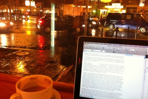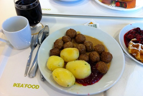 Vi åkte till Ikea. Jag åt köttbullar till lunch och köpte en våffla till efterrätt för det tycker jag att man får. Tage höll på att försvinna i ett bollhav. När vi kom hem gick jag till Lavanderia och satte mig och skrev en sväng.