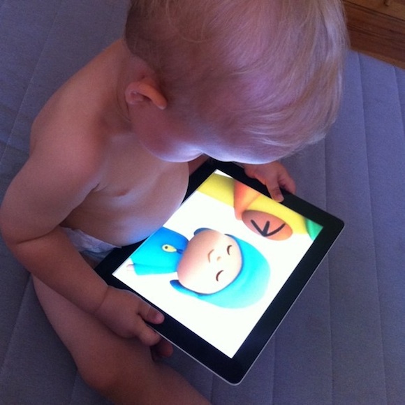 För att förstå Steve Jobs betydelse behöver jag inte se längre än till Tage. Ändå sedan han var sju-åtta månader har han varit djupt fascinerad av sina föräldrars iPhones och sedan inköpet i våras också iPad. I början var den rolig bara för att den lyste och hade ikoner i glada färger, senare ville han se på Teletubbies på den. Men i somras, när han var runt 15 månader, började han på allvar förstå hur de fungerade. Hastigheten och säkerheten han besitter nu, ett och ett halvt år gammal, när han sveper runt bland klippen han tycker om på Youtube är närmast läskig att se. Han väljer, startar, tappar tålamodet om klippet saknar musik och backar tillbaka, väljer nytt, tittar, byter, fram och tillbaka, upp och ner i rullistorna med klipp, stänger Youtube, sveper runt bland apparna, hittar någon av de vi laddat ner speciellt åt honom, startar, vet precis var han ska klicka för att undvika distraktioner som förfrågningar om köp av tillägg i spelen och dylikt, spelar, trycker bort, väljer nytt, sveper tillbaka, Youtube igen, nya klipp. Han slår katten på nosen i Talking Tom tills den ramlar (hans mormor har lärt honom), han dukar bordet i Toca Bocas Tea Party och han tittar på fina Muminfilmer och skräniga Gummibjörnsvideor med förskräcklig smurfhitzmusik.
