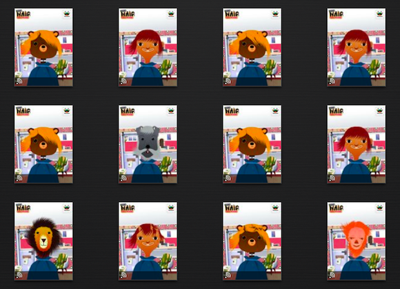 Med det sagt upptäckte jag dock en söt men på sikt möjligen irriterande grej. Jag har även kopplat in iPaden i bildströmmen, den är ju ett ypperligt sätt att kolla igenom fotoalbum på, bland annat. Mest används ju i ärlighetens namn dock vår iPad främst av Tage, han spelar spel och kollar på irriterande gummibjörnsvideor på Youtube. Ett av hans senaste favoritspel är Tocaboca Hair Salon, där man klipper samt fixar till håret på olika djur. Plus tar bilder på dem, bilder som … ja just det, hamnar i min bildström inte bara i iPaden, utan också i min dator och på min telefon.