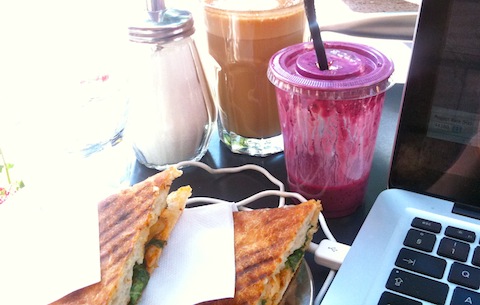 Jobbar i helgen, men tänkte försöka hinna med lite ljudredigering plus sommarliv först. Alltså inmundigas lördagens frukost på Non Solo framför Audacity.