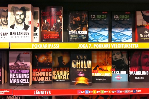 I går var vi i Tornio på köpcentret Rajalla/På gränsen, som bokstavligt talat ligger vid gränsen mellan Sverige och Finland. Köpcentret är dock placerat i Finland, och finska priser gäller. Jag gick in på bokhandeln, som jag tyvärr inte minns vad den hette, och kikade runt lite. Pocketpriserna på de titlar jag tittade på låg mellan 9,25 euro och 12,25 euro. ”Miehet jotka vihaavat naisia”, i Sverige mer känd som ”Män som hatar kvinnor”, kostade 11,25 euro, vilket med nuvarande växelkurs är ganska exakt 100 kronor. Faktum var att den importerade engelska utgåvan ”The girl with the dragon tattoo” var en smula billigare, den såldes för 10,25 euro. Och prisbilden var densamma på andra titlar jag tittade på, det diffade någon euro hit och dit.