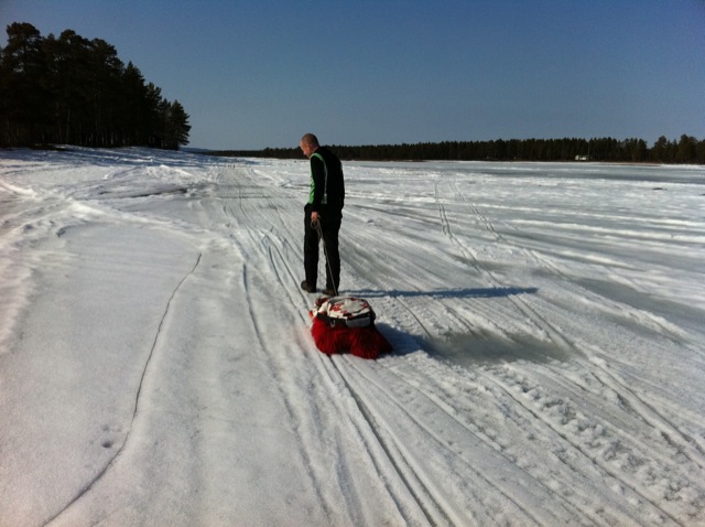 Jag fick förstarta påsken i dag, vi har tänkt åka ut till stugan i Rovasuando i morgon och sova över i två nätter, men svärfar Roger tyckte att det krävdes uppvärmning redan i dag, så jag följde med honom ut en snabbis på förmiddagen, gjorde eld i kaminen, startade fotogenvärmaren och borrade hål i isen och tog upp vatten. Snön på Torne älv gnistrade vackert i solen, men tyvärr utlovas molnigare väder kommande dagar. Oh well, det blir mysigt ändå.