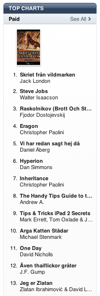 Ja, jag vet att det är i princip noll svenska bokförlag som har hunnit få ut sina titlar i iTunes ännu, men det är ju ärligt talat inte mitt problem.